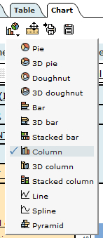 Beyond 20/20 allows for several data visualization options, including pie, column and bar charts. To create a visualization of data, select the Chart tab located on the top left side of the table, next to the Table tab.